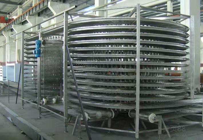 Spiral quick freezers are divided into single spiral quick freezers and double spiral quick freezers, which are mainly used for meat, aquatic products, pasta, frozen food, etc. Its advantages lie in its small footprint, high efficiency, and the output is 500-3000kg/h.